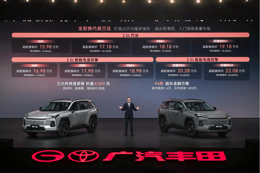 今天,全新换代威兰达正式上市,打出「燃油车域控时代」的 slogan,强调智能化体验,定位 20 万元以内的高性价比 SUV。据悉,全新威兰达是丰田首款采用全新电子电气架构的燃油车,搭载域节制器取千兆以太网,共同高通骁龙 8155P 芯片,实现算力集中取 OTA 升级能力,鞭策燃油车进入「软件定义汽车」时代。其他规格如下:首发搭载丰田 TSS 4。0 智能驾驶辅帮系统,传感器数量增至 24 个,前向摄像头像素提拔至 830 万,毫米波雷达探测距离延长至 280 米,笼盖 200+ 智驾场景;配备 15。6 英寸中控屏、26。4 英寸 HUD 平视显示系统,并支撑 Harmony OS 生态协同,预拆 26 款支流使用。自研言语大模子语音系统支撑全车四音区免交互;此次换代车型新增 2。0L 混动版本,将中型 SUV 混动价钱初次拉入 20 万元区间,从打「起步即高配,入门版就是奢华版」。具体售价如下: