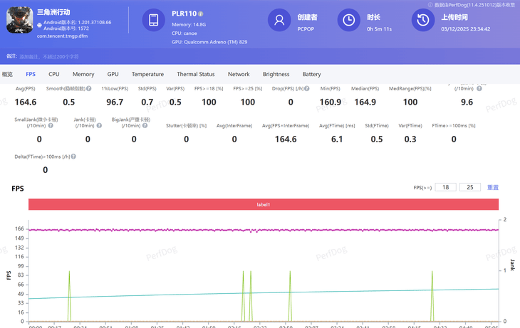 《和平精英》正在一加Ace 6T上则支撑165FPS模式,逛戏时平均帧率能够达到163。5FPS,逛戏过程十分的流利,正在开镜、射击等操做时,响应速度也很是快,逛戏体验十分优良。